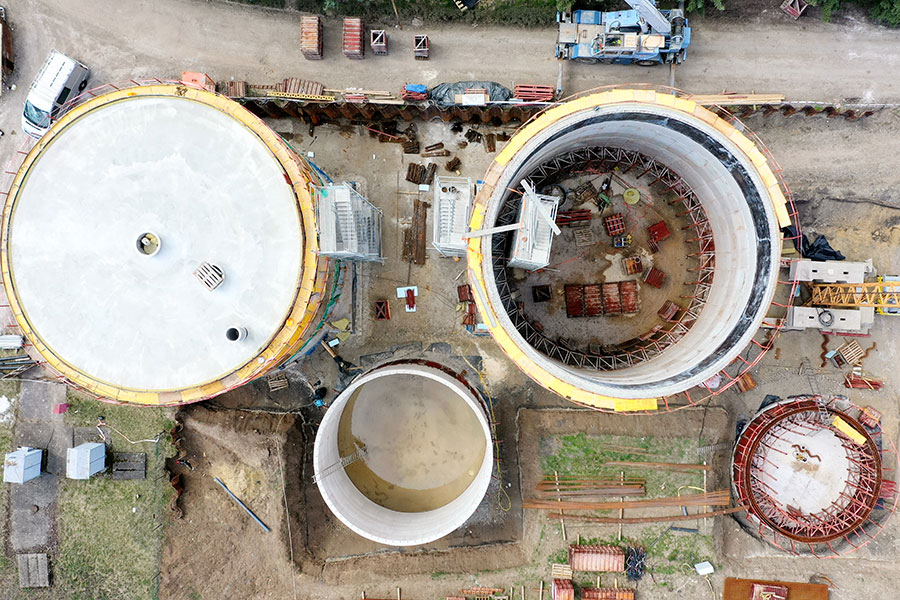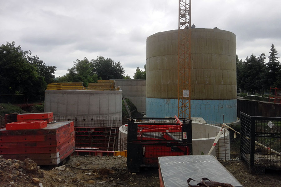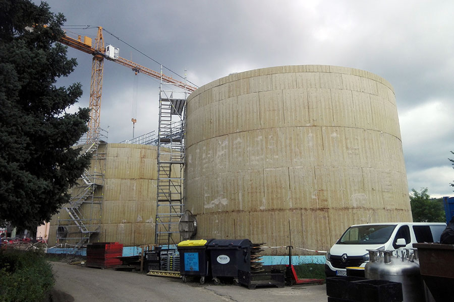 1. Rothasztó műtárgy: átm.: 13,00 m, magasság: 12,00 m, készül 2 db. (felső gáztérben bevonat előre szerelése a falba és födémbe PE lemezből)